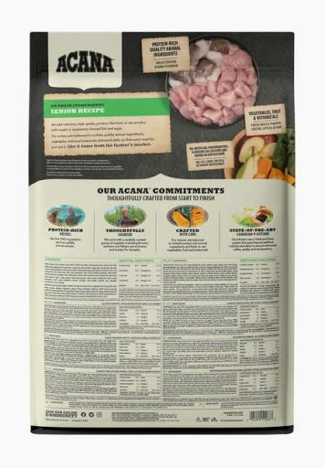 Acana Senior All Breeds es un alimento para perros mayores a 7 años, con una composición rica en proteínas para eliminar la grasa de la masa muscular y baja en carbohidratos, que evita cuadros de obesidad y diabetes en tu mascota entrada en años.