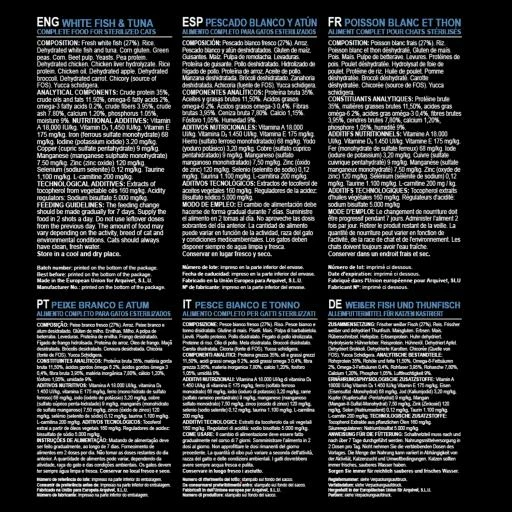 Ingredientes Arquivet Pienso para Gatos Esterilizados de Pescado Blanco y Atún
