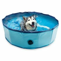 - La piscina está hecha de PVC impermeable y tiene un fondo antideslizante para evitar que las mascotas resbalen mientras juegan.