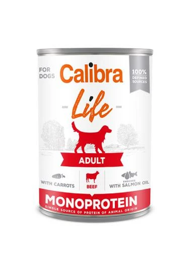 Calibra Dog Life Adult Beef with Carrots – Esta receta de comida húmeda para perros con carne de vacuno y zanahorias es un alimento completo diseñado para perros adultos.