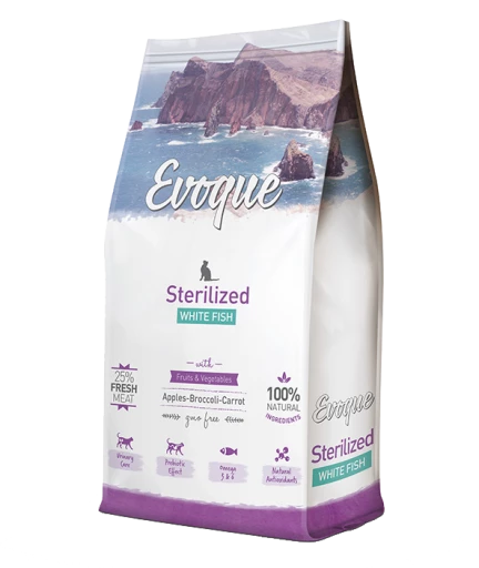 Descripción Evoque Pienso de Pescado Blanco Atún y Arroz para Gatos Esterilizados
