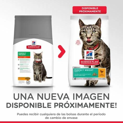 HILL’S SCIENCE PLAN Perfect Weight Alimento para gatos proporciona un delicioso e innovador control del peso con una tecnología nutricional clínicamente probada.