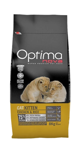 Optimanova Cat Kitten Chicken & Rice está especialmente formulado para aportar la máxima nutrición tanto durante los primeros meses de vida, como en los periodos de lactancia. Protege el sistema inmunológico y estimula el desarrollo óptimo, evitando posibles trastornos cardiacos y problemas digestivos.