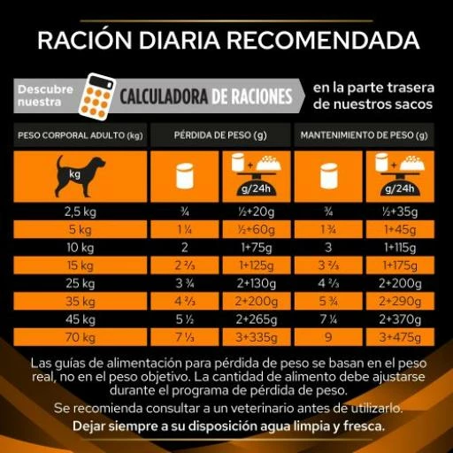 | Peso del perro | Pérdida de peso | Mantenimiento del peso |