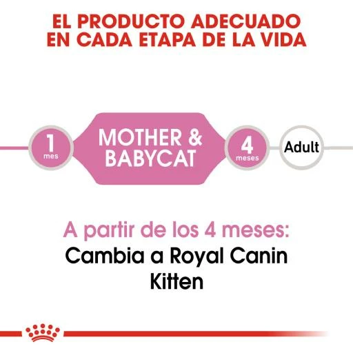 La mousse Mother & Babycat de ROYAL CANIN® ha sido específicamente formulada teniendo en cuenta las necesidades nutricionales de la madre y sus gatitos. Este alimento está indicado para gatas en período de gestación o lactancia y para gatitos de 1 a 4 meses.