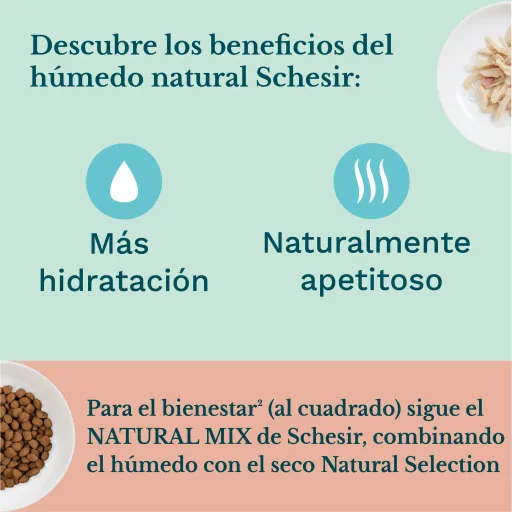 - Todos los ingredientes seleccionados por Schesir son 100 % naturales