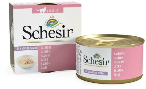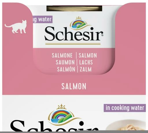 La receta de Schesir se basa en el salmón,preparado al natural en su propia agua de cocción. Una preparación exclusiva y deliciosa para deleitar incluso a los gatos más exigentes.