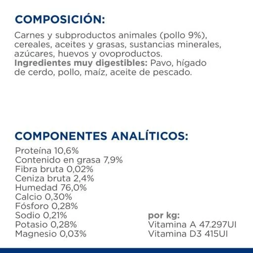 Ingredientes Pack 24 Hill’s Comida Húmeda Prescription Diet a/d Urgent Care para la Recuperación de Perros y Gatos