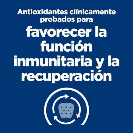 | Antioxidantes clínicamente probados | Altos | Refuerzan el sistema inmunitario y favorecen la capacidad natural de recuperación de la mascota |