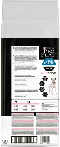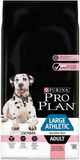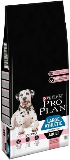 PURINA PRO PLAN Large Athletic Adult sensitive skin con OPTIDERMA rico en salmón es un alimento seco completo. Alimento seco para perros atléticos de tamaño grande.