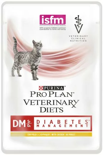 Descripción Pro Plan Veterinary Diets Comida Húmeda DM Diabetes Managment ST/OX Trocitos en Salsa de Pollo