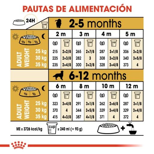 El tamaño, forma, textura y fórmula de la croqueta están adaptados al Golden Retriever cachorro.