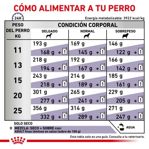 | PESO DEL PERRO (kg) | DELGADO | NORMAL | SOBREPESO |