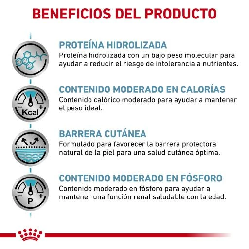 Esta comida completa para perros incluye un nivel moderado de fósforo, para promover una mejor función renal en tu mascota, sin dejar de aportar los nutrientes adecuados para una alimentación equilibrada. Incluye proteínas altamente digeribles y son hidrolizadas, pensado para mascotas predispuestas al aumento de peso.