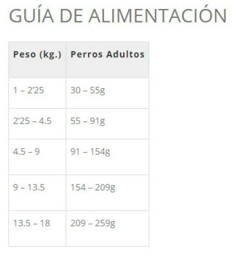 El cambio de alimento debe hacerse de forma gradual durante 7 días. Suministrar la ración diaria en 2 o 3 tomas repartidas durante el día. La cantidad de alimento puede variar en función de la actividad, raza del perro y condiciones ambientales. El perro debe disponer siempre de agua limpia y fresca. Conservar en lugar fresco y seco.